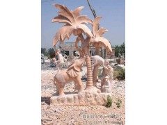 供应晚霞红大理石雕刻,大象石雕艺术,石雕猴子摘椰,宏博雕刻