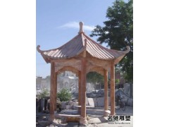 供应东方石雕凉亭,红色尖角凉亭雕刻,东方雕刻,名驰石材