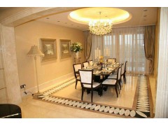 供应室内餐厅装饰,大理石艺术拼花地板,米黄色墙面装饰