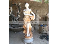 石雕喷泉 大理石拼色美女造型喷泉