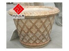 供应黄色花岗岩板材加工,园林花钵雕刻,汉匠雕塑