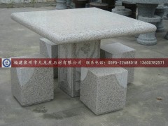 桌椅:石桌椅由天然石材雕刻而成,坚固耐用,美观大方。石桌椅常用于室内外,居家、广场、公园、住宅小区规范使用。石桌椅可由各种石材雕刻:花岗岩石桌椅(黄锈石石桌椅、白麻石桌椅、芝麻白石桌椅、芝麻黑石桌椅等等)、青石石桌椅、大理石石桌椅(汉白玉石桌椅等等)、砂岩石桌椅等,还可雕刻各种造型;动物石桌椅、围棋盘石桌椅、象棋盘石桌椅、圆形石桌椅、方形石桌椅、人物石桌椅、石靠背椅、靠背长椅等。