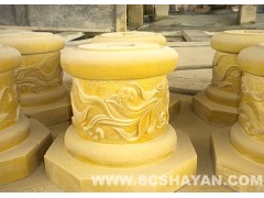 供应异形石材,砂岩制品,金黄色异形,表面浮雕花纹,金色砂岩
