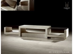 供应创意型电视柜,白色洞石柜面,异形电视柜面,洞石工艺