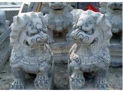 供应动物雕刻,麒麟狮子雕刻,黑色线条勾勒雕刻,砂岩工艺