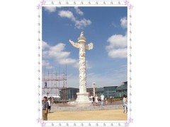 我们雕刻的华表,龙柱(立体,龙头凸起。)遍布世界各地。曲阜大成殿前的龙柱被联合国教科文委员会定为文化遗产.另外我们设计雕刻的大连星海湾广场上的汉白玉华表,高19.97米,直径1.997米;华表底座附有八条龙、柱身雕有一条龙,寓意九州;顶端蹲有一只金光闪闪的动物,俗称"朝天吼",高2.3米。"朝天吼",传说是龙王的儿子,有守望习惯。这里取盼望之意。广场中心仿效北京天坛圜丘,由999块四川红大理石铺就。大理石上雕刻着天干地支、24节气和12生肖,外围是金黄色的大五角星,周边由汉白玉石柱托起五盏大型宫灯,柱高12.34米。广场四周,安放着按周朝图谱雕刻的9只造型各异的大鼎,每鼎刻一字,组成"中华民族大团结万岁",寓一言九鼎,也有我们雕刻!