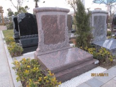 供应墓碑工程案例,浮雕玫瑰花墓碑石,红色墓碑石,花岗岩墓碑