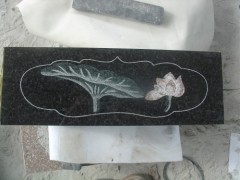 供应日式墓碑板,黑色墓碑板,绿色荷叶镶嵌,红莲花镶嵌