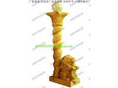 供应艺术石灯柱雕刻,西方雄狮雕刻装饰,金砂岩石灯柱,艺术砂岩
