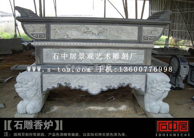 庙宇供台石雕、青石宝鼎石雕、方鼎石雕、龟载碑石雕