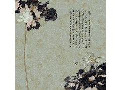 供应爱莲说艺术墙,艺术墙板材,莲花绽放图彩绘背景墙,艺术气息