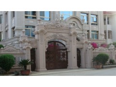 供应工程案例,别墅庭院外墙工程,雕花门廊,大理石异形门廊