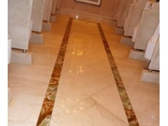 供应华盛江泉大酒店过道案例,绿玉透光玉石线条,米色玉石地板