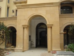 供应别墅酒店外墙装饰案例,异形罗马柱,黄木纹门廊铺贴石材