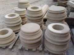 供应异形石材加工,米白砂岩柱底,圆边线条柱底,艺术砂岩柱底