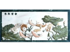 供应石雕工艺品,年年有余拼画,荷塘鲤鱼拼画,高档玉石拼画