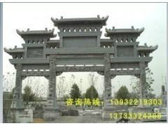 供应园林古建石牌坊工程,三门石牌坊,牌坊头部雕刻龙,砂岩牌坊