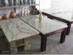 供应石雕家具雕刻,玉石茶几雕刻,绿色玉石茶几,长方形茶几