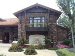 供应工程案例,园林别墅外墙工程,锈色板岩文化石,墙面文化石