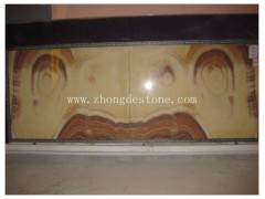 供应天然玉石画板,水帘洞玉石画,透光石板材,黄色板材