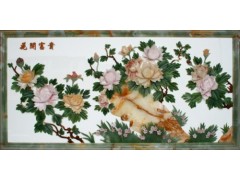 供应花开富贵石画,高档玉石画,精品玉石画,室内装饰玉石画